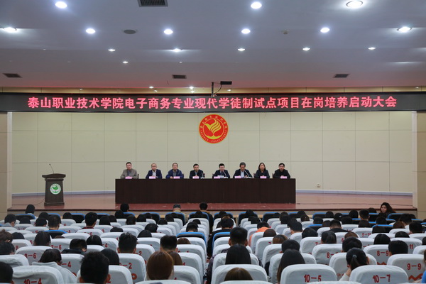 10月11日上午,我院《山东省现代学徒制试点项目在岗培养启动仪式》在学术报告厅举行。学院党委副书记、副院长马培安,教务处、财经系负责同志、财经系电子商务专业负责人以及2017级电子商务专业全体师生200余人参加大会;山东泰盈科技有限公司泰安基地总经理商立江、人力资源部经理卢健受邀参加大会。财经系主任李金伟主持启动仪式。