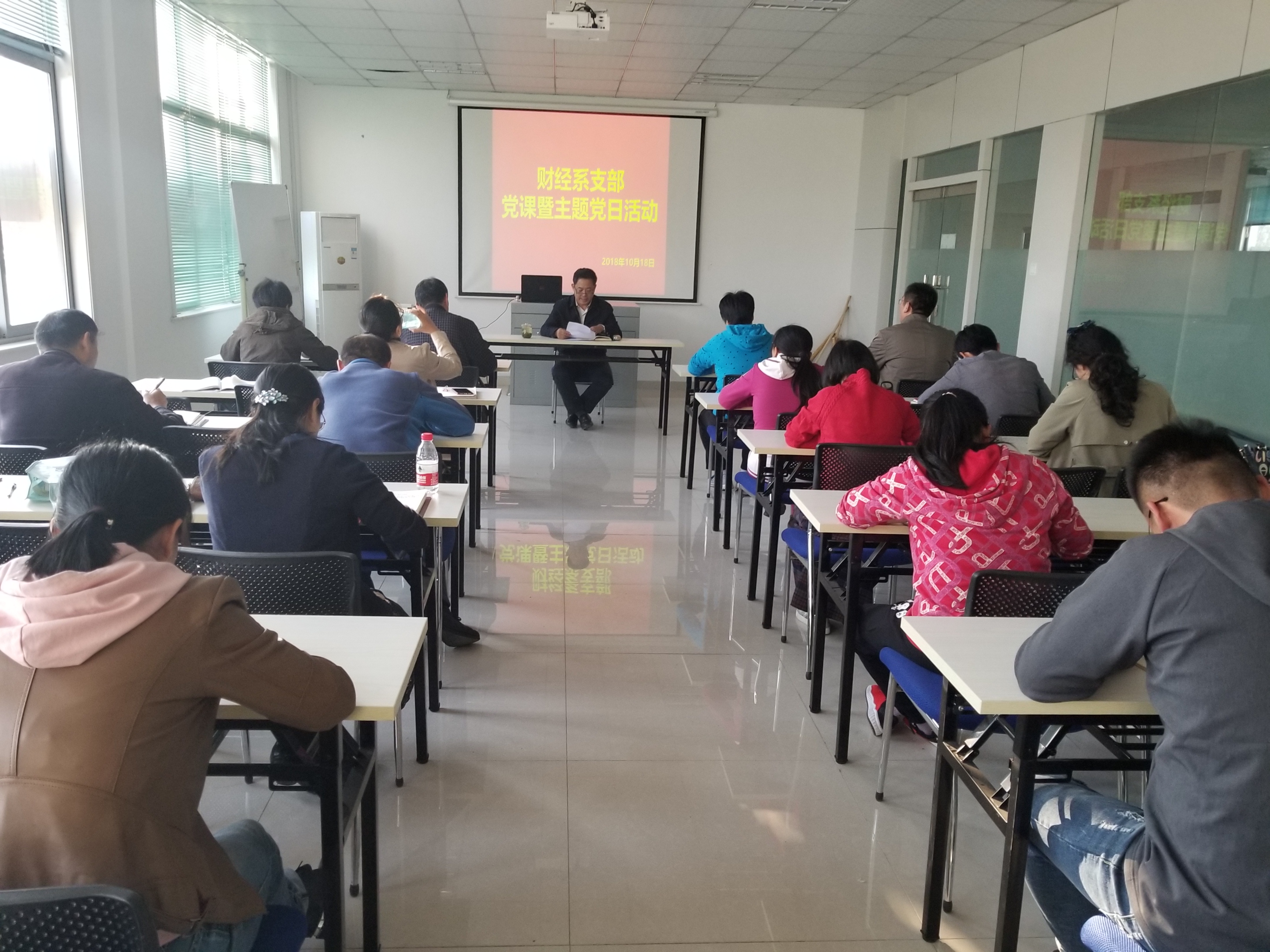 10月18日下午,财经系在居正楼开展了党支部主题党日活动。学院党委委员、副院长张小烨,系党总支成员级全系党员参加。活动由系党支部书记李金伟主持。