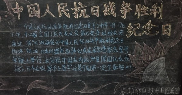 为纪念中国人民抗日战争暨世界反法西斯战争胜利73周年,进一步加强爱国主义和革命传统教育,信息技术工程系举办主题班会活动。