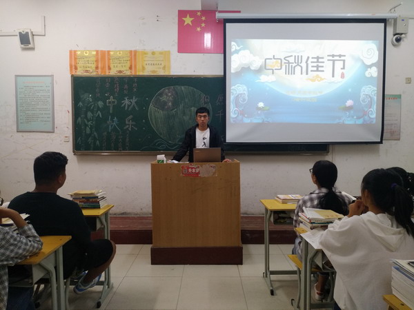 各班班长通过查阅资料,向同学们介绍了中秋节的来历、习俗、传说和诗文等传统文化,使同学们了解中秋文化习俗,共同分享欢度传统佳节的喜悦。同时各班通过播放相关视频和朗诵等多种形式,让同学们切身体会中华优秀传统文化,增强同学们爱国主义情感。
