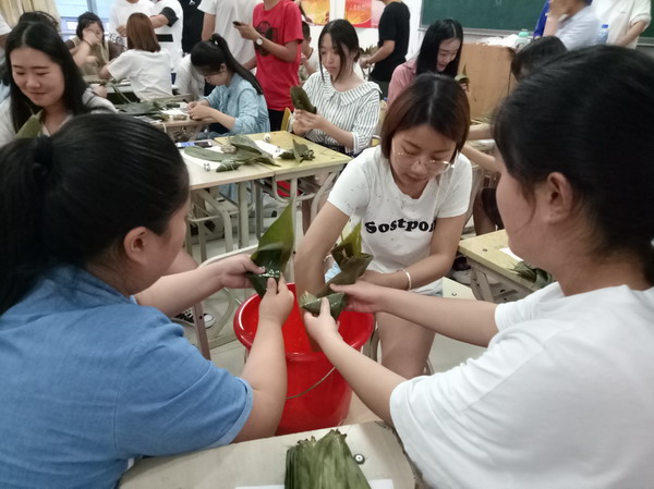 6月13日,工艺美术系师生举行包粽子缝荷包大赛,一起度过了一个欢乐祥和的端午节。张海声、周平、王园、葛欢欢、冯超群和伊霞老师参加活动并作技术指导和评判。