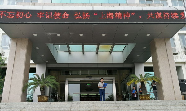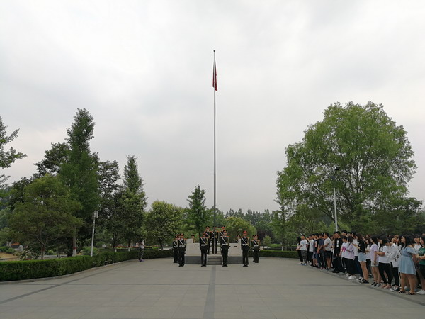 6月4日清晨,财经系2017级全体学生在致远楼前举行升旗仪式。