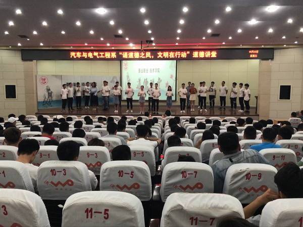 聆听道德故事,沐浴道德洗礼,品悟道德力量,5月23日下午,汽电系在图书馆报告厅开展“诵道德之风,文明在行动”道德讲堂活动.全体同学参加。