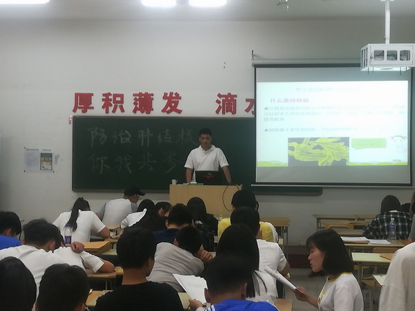 为了让同学们进一步了解肺结核的危害性,掌握防治方法,5月24日晚自习时间,信息系各班举办肺结核防治主题班会。