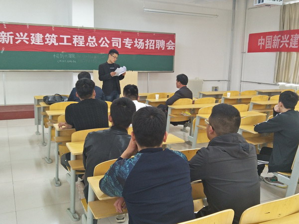 4月13日下午,建筑系在行知楼A一201举行中国新兴建筑工程总公司专场招聘会。