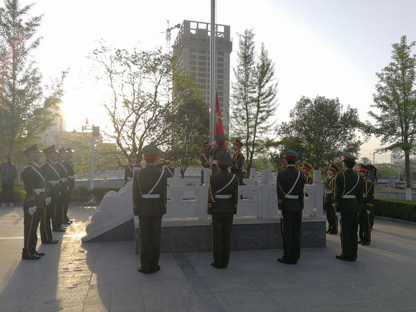 4月16日清晨,财经系2017级全体学生在致远楼前举行隆重而庄严的升国旗仪式。