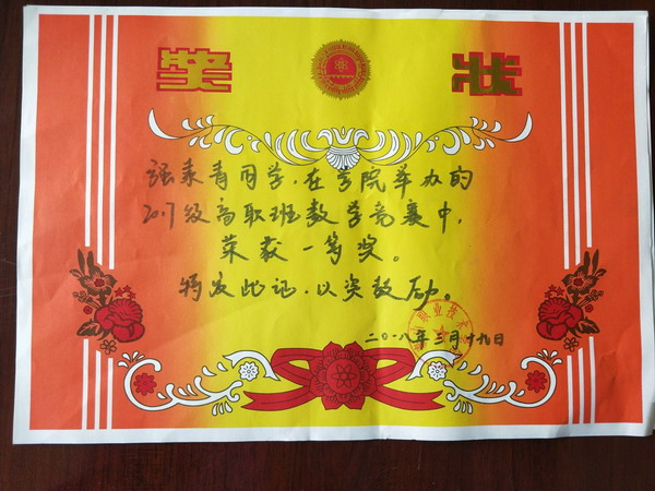 近日,在我院举办的2017高职班数学竞赛中,信息系获得一等奖1项、二等奖1项、三等奖2项的优异成绩。