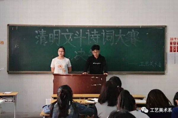 4月2日下午,为弘扬中华优秀传统文化,丰富校园生活,工美系在明志楼203举办清明文斗诗词大赛。学生科、17级部分辅导员老师参加本次活动并担任评委。