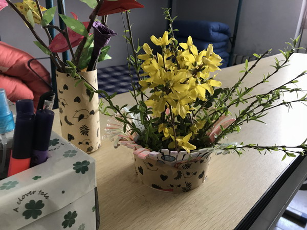 在同学们灵巧的双手创造下,平时不起眼的废弃物品旧貌换了新颜,废纸折成一朵朵美丽的花朵、拼接成装饰感的墙画,在灯光的映衬下显的既浪漫而又神秘;用纸箱做成的收纳盒进行物品储纳,让同学们更有家的感觉;别样的风铃,彰显了同学们肆意的青春。一件件的作品,充分展示了同学们的动手能力和创造力,使宿舍变得活泼灵动,温馨幸福。