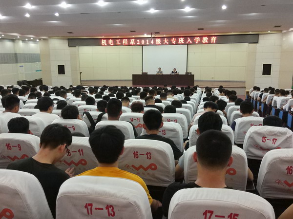 8月22日下午,机电工程系在图书馆报告厅举行2014级新生入学教育会议,对2014级五年制大专全体学生进行入学专题教育。系分管学生工作副主任、学生科及相关辅导员、班主任参加。