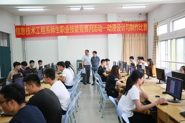 6月20日,信息技术工程系在思汗楼数字媒体实训室举行动漫设计与制作竞赛,学院党委委员、副院长王文林,信息系相关教师和学生参加。