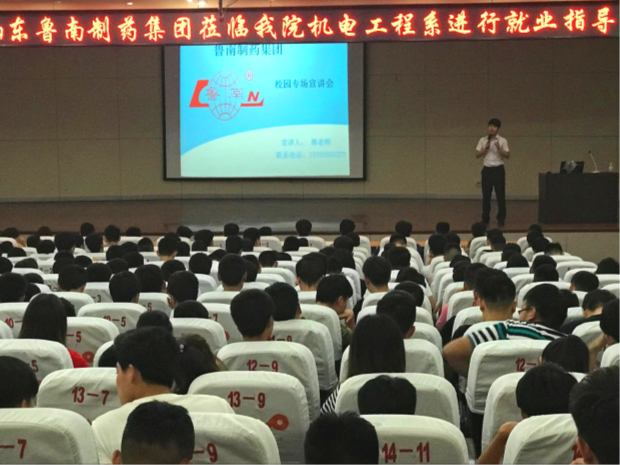 5月16日,机电工程系在图书馆报告厅举行2018届毕业生就业专题讲座,邀请鲁南制药集团人力资源部经理郭永帅做《大学生就业与职业生涯规划》专题讲座,系负责人,全体辅导员、班主任和2018届毕业生参加。