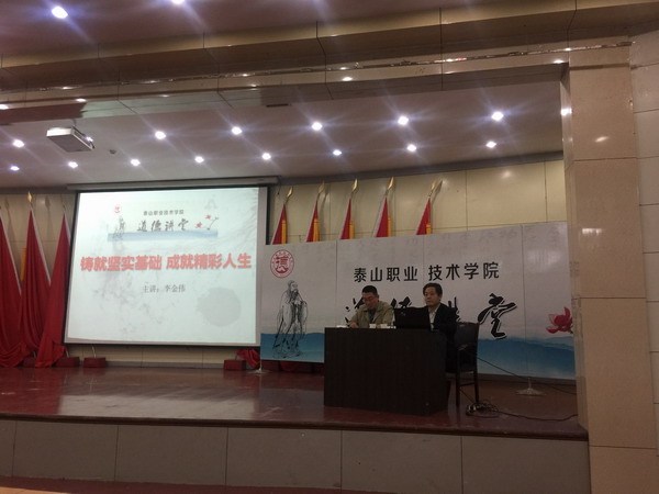 4月26日,财经系在图书馆报告厅开展2017道德讲堂活动,由该系主任李金伟为学生做题为《铸就坚实基础 成就精彩人生》讲座,2015级、2016级400余名学生参加活动。