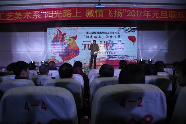 12月27日下午,工艺美术系在我院图书馆报告厅举办了“阳光路上,激情飞扬”2017年元旦联欢会。党委副书记张清民,党委委员、副院长王文林,教育局督导室、上高小学相关负责同志,工美系美术协会秘书长郭敬元及工美系全体师生参加。