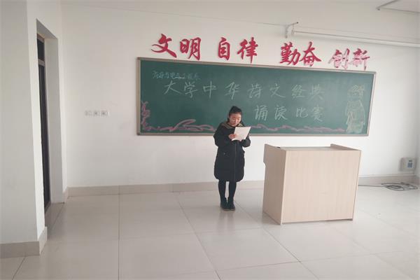 12月15日,汽电系在行知楼C-602教室举办了中华诗文经典诵读比赛。韩笑同学获得冠军。