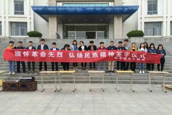 四是举行了宣誓仪式,全系学生积极投入到签字活动中,以实际行动表达对先烈的敬佩和哀思。