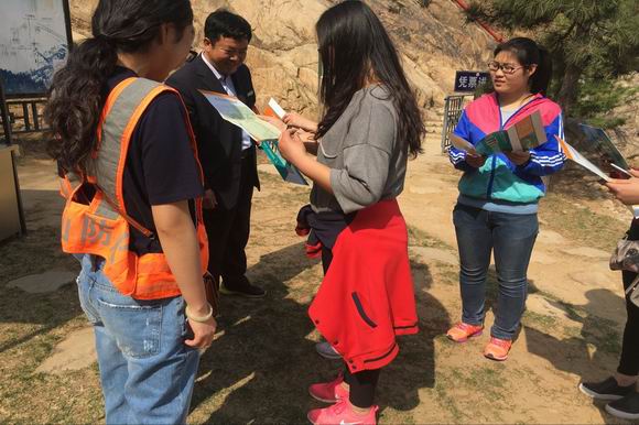 到达天烛峰景区后,志愿者成员被分为3个组,在景区工作人员的带领下,志愿者在辖区内进行森林防火宣传巡逻,协助护林员做好山林突发火灾的防范工作。当看见正在墓地烧纸钱和扫墓经过的居民,便上前分发随身携带的宣传资料,进行文明祭祀劝导,提醒人们不要采用放鞭炮、烧纸钱这种传统祭祖方式,倡导采取献一束花、植一棵树、敬一杯酒等文明祭祖方式寄托哀思,破除陋习、弘扬社会新风正气,做个关爱自然、护林防火的好公民。“只要我们每个人都重视森林防火,遵守防火制度,泰山就能一直风景如画,我们的生活环境也会更加美好。”志愿者对森林里的沿路垃圾进行清理,为保持泰山优美环境尽自己的一份力量。【供稿:旅游系 文/图:仝西洋 编辑:李伟】