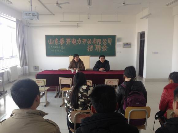 1月14日,汽电系在行知楼C604教室举行山东泰开电力开关有限公司招聘会,该系大三汽车电子技术专业同学们参加招聘。
