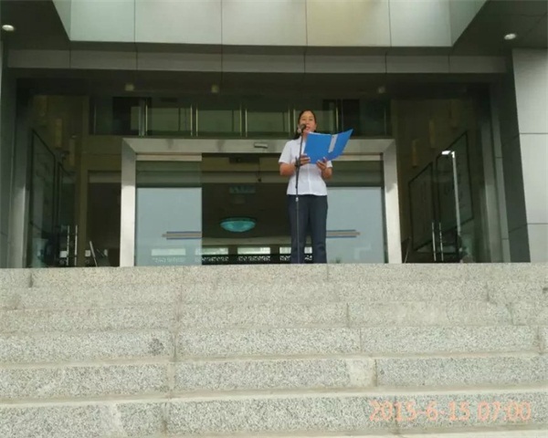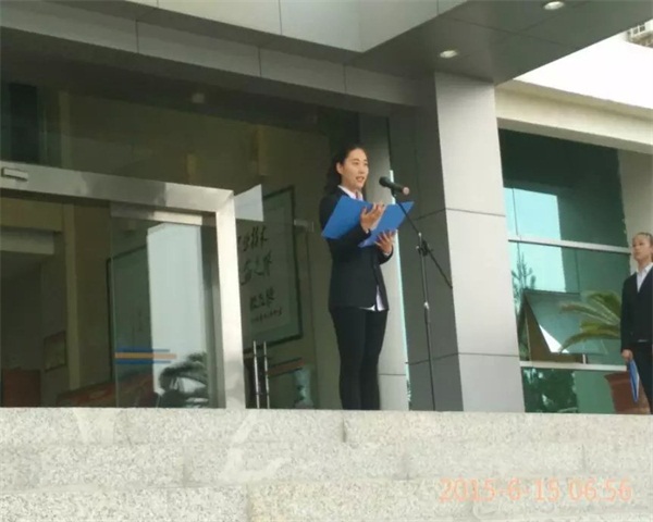 6月15日清晨,财经系师生齐聚学院办公楼前参加升国旗仪式。