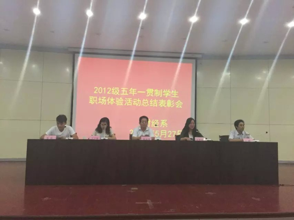 5月27日下午,财经系在图书馆报告厅召开2012级五年一贯制学生职场体验活动总结表彰会。财经系主要负责人、分管学生工作负责人、团总支老师、带队老师、参加体验活动班级的班主任与全体同学参加了此次会议。