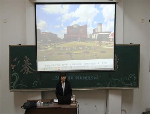 2015年3月25日下午,工艺美术系在合堂教室举办“泰职学生看台湾”赴台学习经验交流会。交流会邀请赴台学习半年返校的王慧英同学作发言,工艺美术系主任,学生科、团总支全体人员,部分教师及装饰专业全体在校生参加交流会。