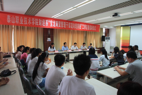 7月11日,我院财经系与泰安新时代商贸有限公司“宝龙商贸管理干部定向培养班”工学交替顶岗实习启动仪式在学院办公楼三楼会议室隆重举行。党委副书记、副院长马培安,泰安新时代商贸有限公司宝龙店总经理张相继,人力资源部经理张海英,财经系负责同志和“宝龙商贸管理干部定向培养班”学生出席启动仪式。