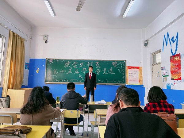 11月14日下午,机电工程系在明理楼504会议室举办第十五届学生竞选大会,近80名学生参加此次竞选,该系学生管理相关教师负责成员评分。