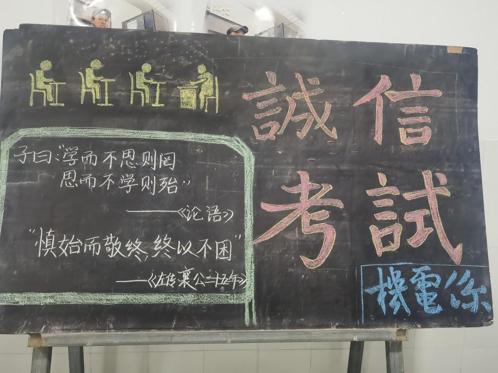 机电系开展“诚信考试”主题活动随着期末考试的临近,为了营造良好的考试氛围、净化考场环境、 杜绝有失诚信的舞弊行为。