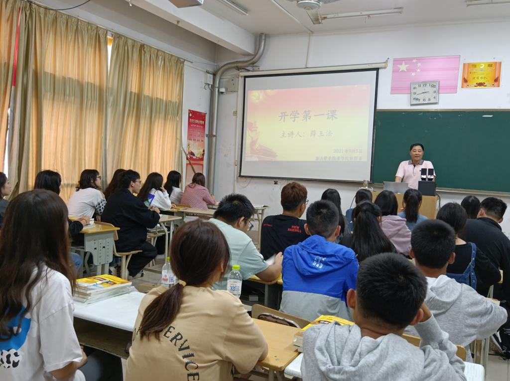 为深入宣传贯彻习近平总书记在庆祝中国共产党成立100周年大会上的重要讲话精神,将“七一”重要讲话精神融入学校思想政治教育和课堂教学中,讲好新学期的“开学第一课”,9月5日,旅游系党总支书记薛玉法在明志楼411室给同学们上了一堂党史学习教育主题党课,部分教师旁听了此次党课。