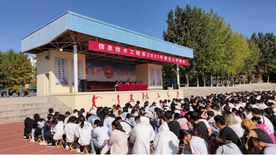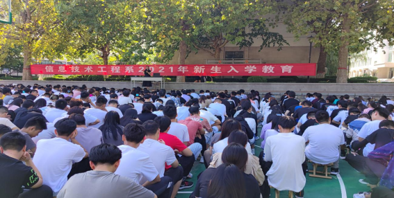 9月15日信息技术工程系在运动场和篮球场举行2021级新生入学教育大会,学院党委委员、副院长王文林以及系有关负责人和全体新生辅导员(班主任)参加了相关活动。
