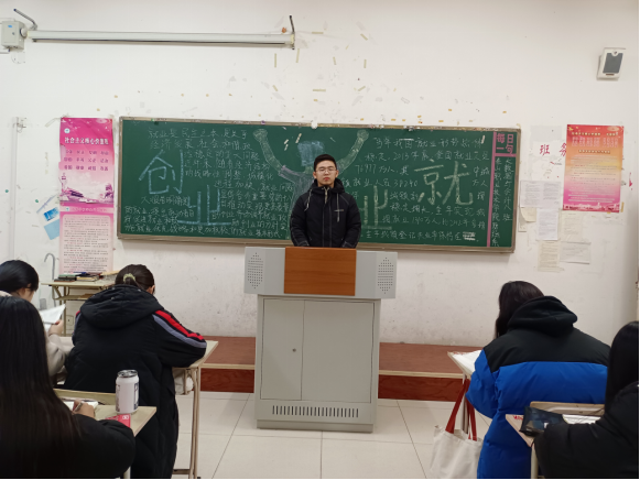 “创”铸造未来,“新”引领成功。为了进一步加强同学们对当前大学生就业形势的认识,帮助学生树立正确的就业观念,明确自己的未来发展方向,树立积极的人生观、价值观,财经系于11月14日晚组织各班召开“就业创业”主题班会。