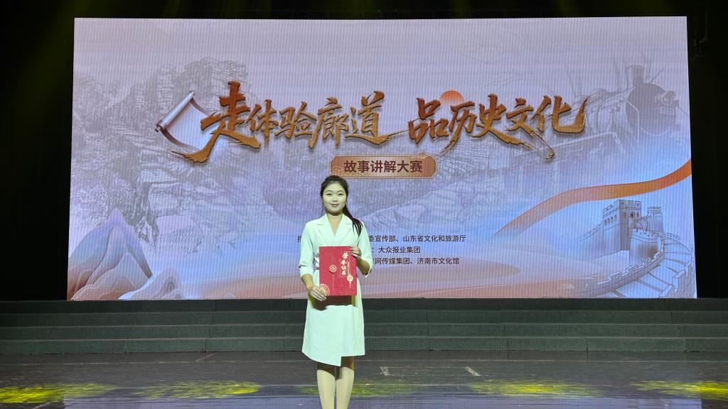 本次大赛以国家文化公园(山东段)和“四廊一线”沿线历史事件、人文故事等多元文化要素为轴线,讲述沿线文化故事。财经系学生高桢依从全省高校组初赛中脱颖而出晋级决赛。在决赛中,她以“汶水汤汤 文明根脉”为主题,生动讲解了泰安大汶河的故事。凭借扎实的专业素养和出色的现场表现,得到评委的认可。