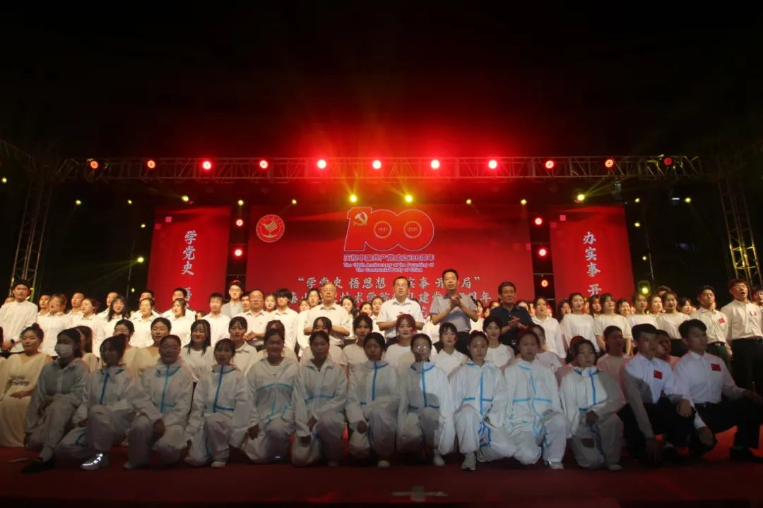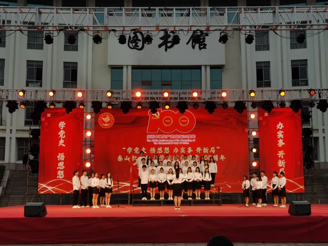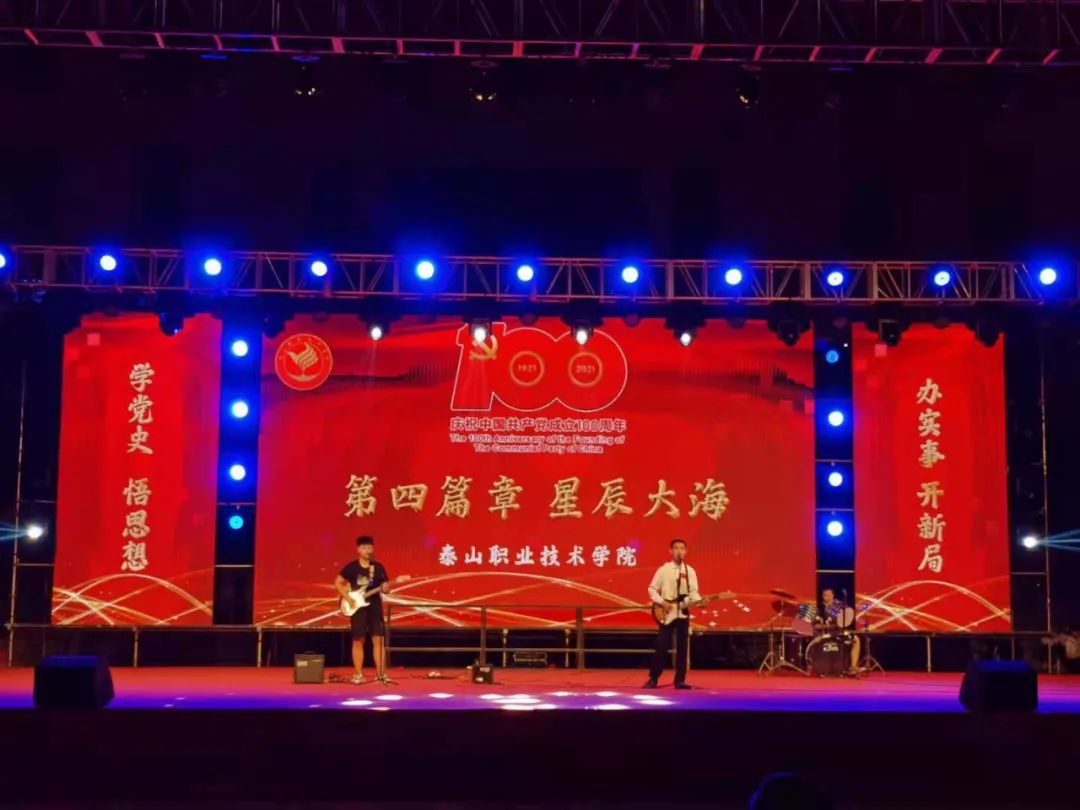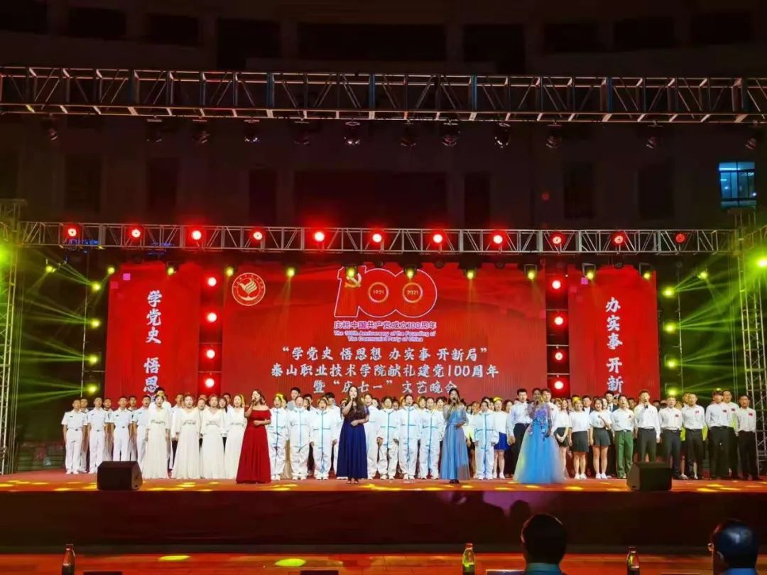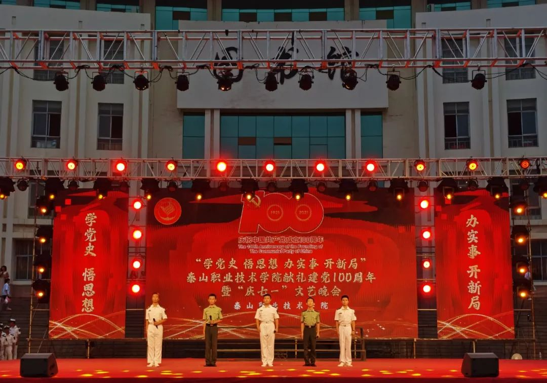 百年征程波澜壮阔,百年初心历久弥坚。“学党史 悟思想 办实事 开新局”泰山职业技术学院献礼建党100周年暨“庆七一”文艺晚会28日晚在青春广场举行。学院党委书记张勇华,学院党委副书记、院长毕于民,学院党委副书记张清民,学院党委委员、纪委书记项岚,学院党委委员、副院长张小烨,学院党委委员、副院长王文林,学院党委委员、工会主席李敬海,学院党委委员、宣传统战处处长倪斌及各党总支书记、各系、各部门负责人,同各系(院)学生们参加并观看演出,共同回顾中国共产党成立100年来波澜壮阔的光辉历程,共同祝福伟大的党带领中国人民迈进新征程、奋进新时代。