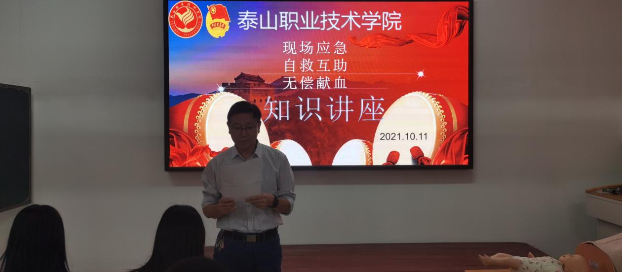 为最大限度的保障同学们的生命安全,向同学们普及应急情况下的急救知识,提高自救互救能力。10月11日下午,学院团委联合泰安市中心血站,邀请应急救援知名专家,泰安市中心血站党总支副书记、国家级现场应急救护培训师资李青老师,在学院开展了关于急救知识培训的讲座,学院100名团学骨干参加本次培训讲座。
