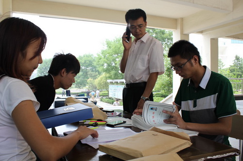 2013年6月27日-6月30日,院学工处、团委和公寓管理科、院学生会及有关部门、系部联合为二千三百余名2013届应届毕业生集中办理完离校手续,同学们带着梦想,满怀期待,离开美丽的校园,步入社会,去追寻那属于自己的一片蓝天。