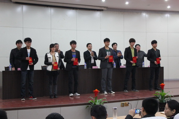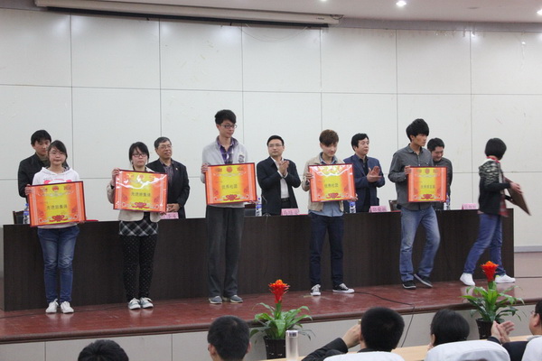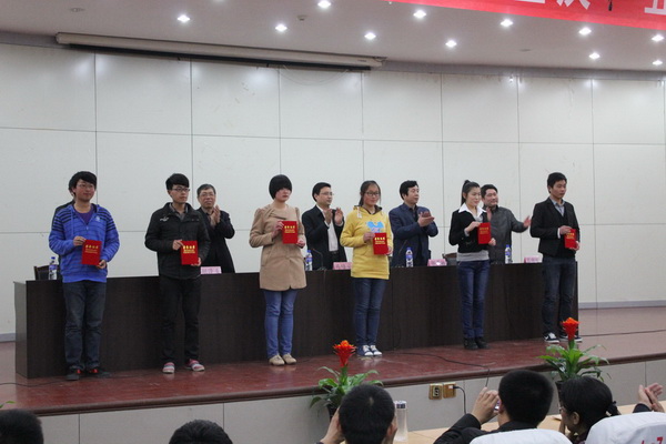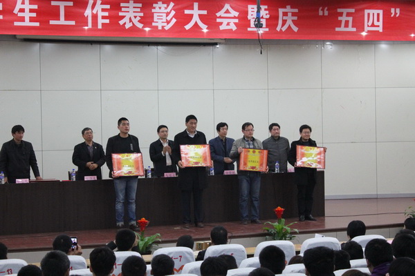会议首先为在雅安地震中遇难的同胞默哀一分钟。学工处邵处长宣读完表彰决定后,举行了颁奖仪式。本次表彰大会共表彰国家奖学金获得者4名,省政府奖学金获得者4名,4个 “优秀团总支”,17个 “优秀团支部”,123名“优秀团干部”,439名“优秀团员”,26个先进班集体,141名秀秀班干部,494名优秀学生,5个“优秀社团”,122名“社团先进个人”,获奖的先进集体和优秀学生代表上台领奖。