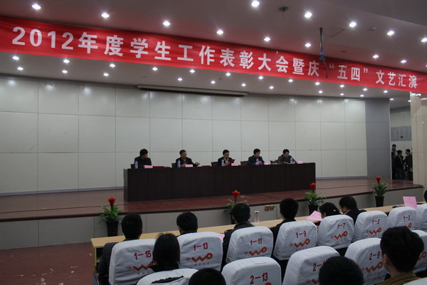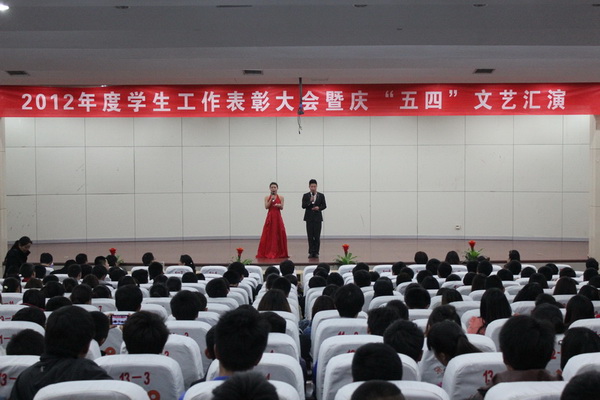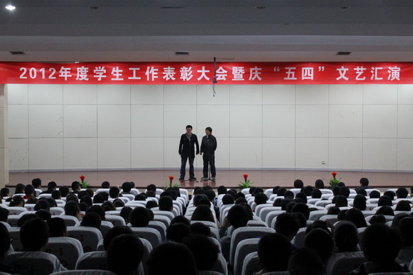 2013年4月23日下午,院学工处、团委在图书馆报告厅举办了“2012年度学生工作表彰大会暨庆‘五四’文艺汇演”,学院副书记、副院长马培安出席并作了重要讲话。院学工处、团委领导,各系分管学生管理的副主任、系团总支成员及优秀学生代表参加了会议。