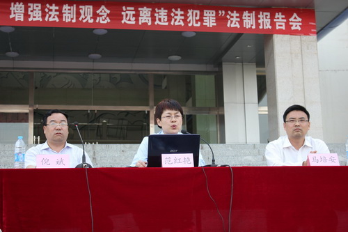 范红艳庭长结合具体案例,就如何加强大学生思想政治教育、预防违法犯罪,如何改善大学生就业环境的社会管理配套机制,如何防止大学生在求职过程中误入歧途而违法犯罪以及如何积极帮扶失足大学生,让他们阳光回归等问题做了内容丰富、案例鲜活、富有教育意义的报告。