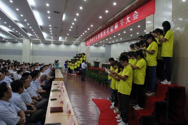 2012年9月7日下午,全院教职工在学术报告厅隆重集会,庆祝第28个教师节。泰安市人大常委会副主任尹衍祥,市政府副市长徐恩虎,市政协副主席、市总工会主席张书盈,市政府办公室副主任高翔,亲临学院祝贺。学院党委书记闫远东发表重要讲话,党委副书记、院长薛云东致辞,党委副书记、副院长毕于民主持会议。