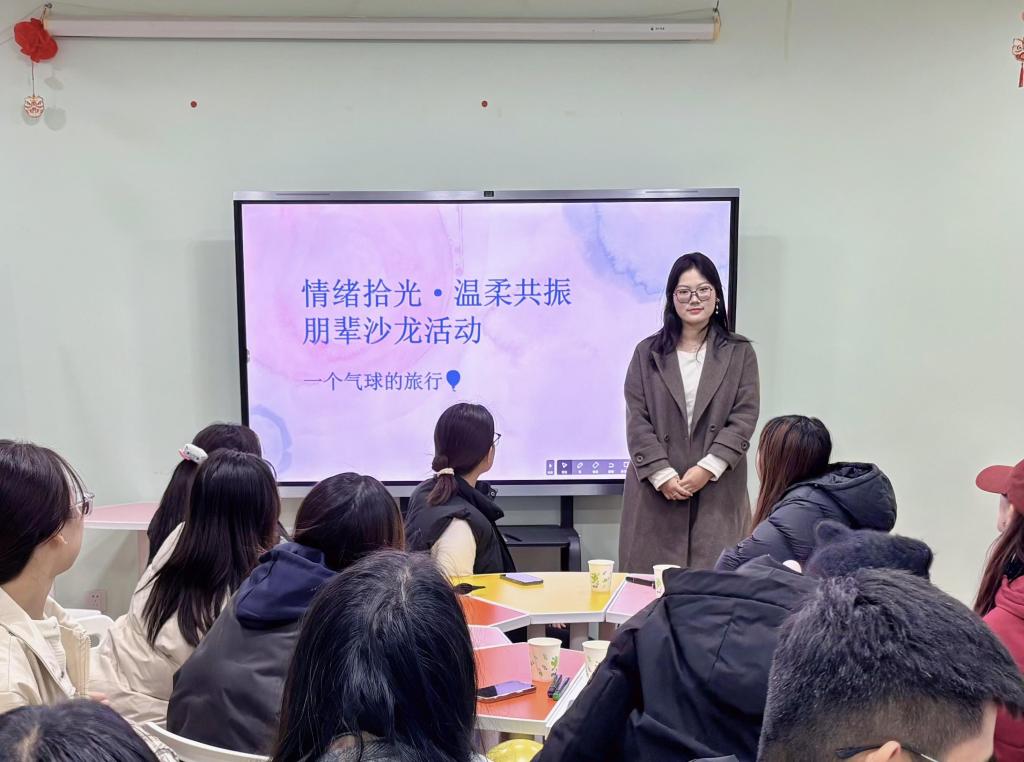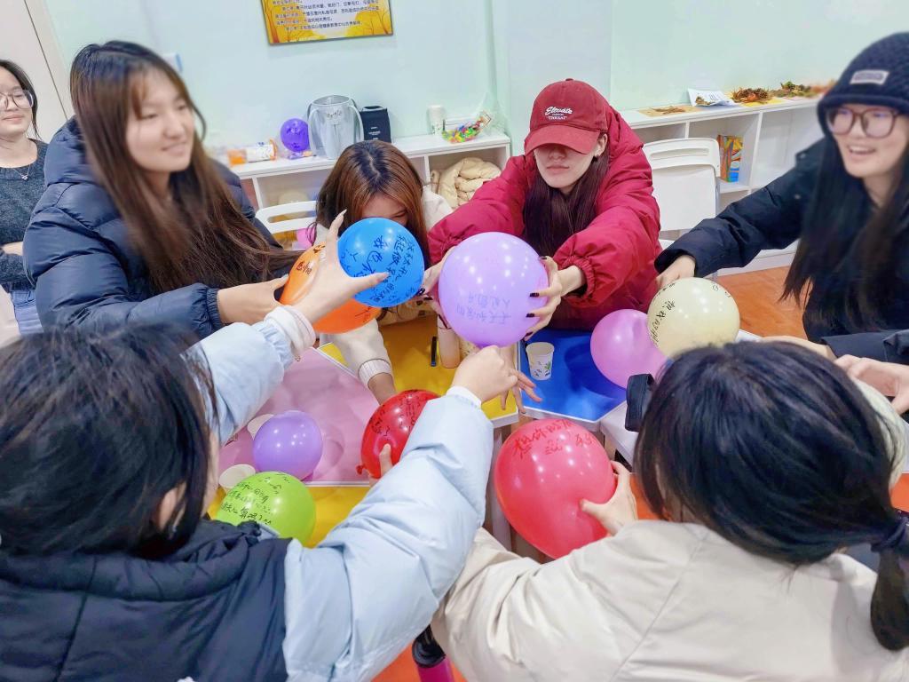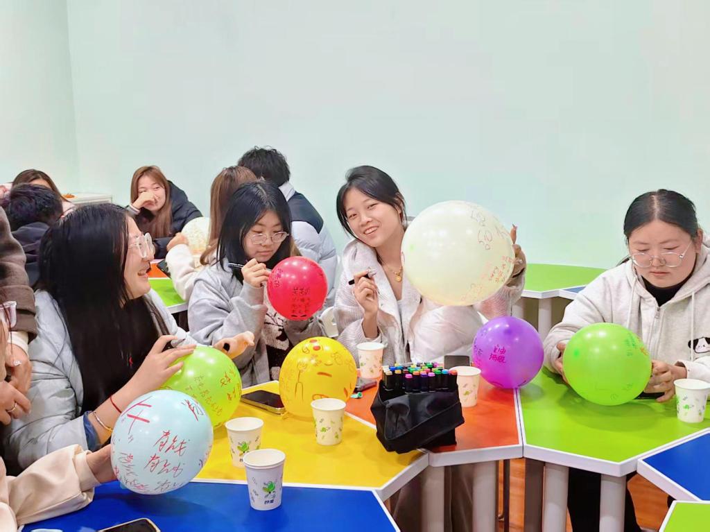 当装满情绪的气球在彼此手中传递,一场温暖的“共振”悄然发生。大家围坐在一起,分享气球上的故事,在无声传递中了解他人的情绪,也收获了来自朋辈的支持与共鸣。那些曾经的迷茫、焦虑,在真诚的分享中被温柔消解;那些小小的喜悦、感动,在彼此的祝福中加倍升温。这便是朋辈的力量——以真诚为桥,让情绪在共振中找到归属。