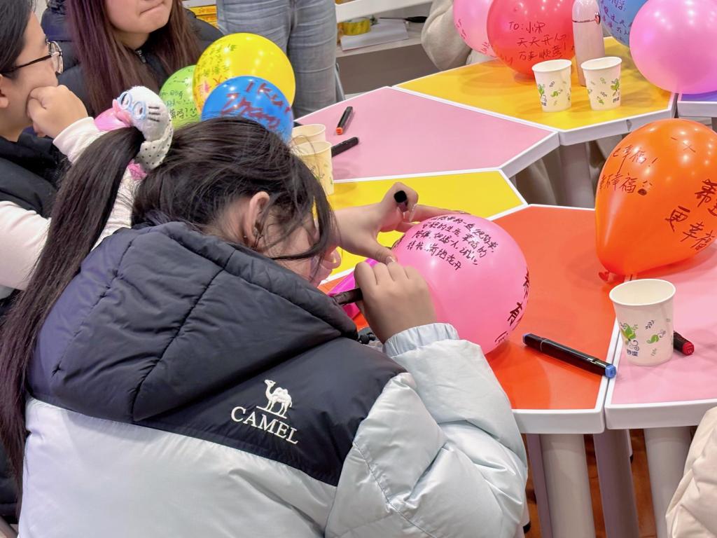 这个环节中,色彩缤纷的气球成了情绪的“载体”。参与者们拿起彩笔,在气球上尽情书写、绘画,有的记录下当下的小确幸,有的倾诉藏在心底的烦恼,还有的画上了代表心情的可爱表情……每一个气球都成了独一无二的“情绪胶囊”,将抽象的情绪具象化,让大家在书写中与自己的内心温柔对话。