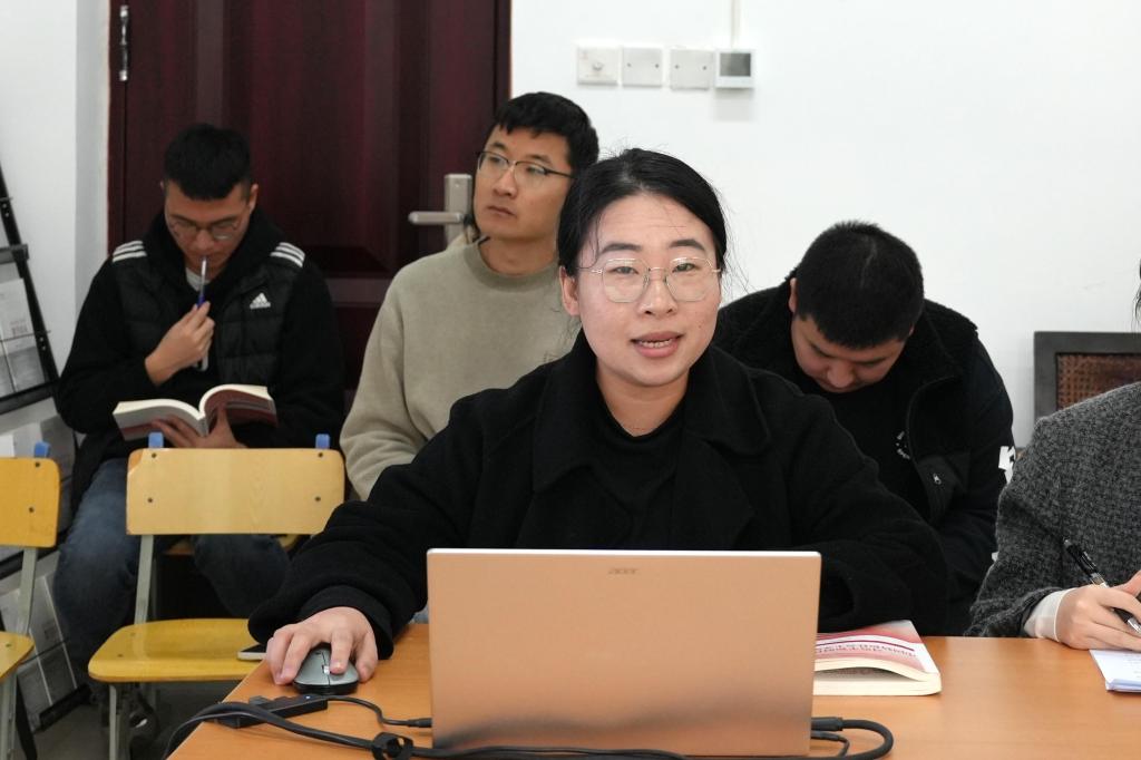 郭皎皎作《党的二十届四中全会精神融入“习近平新时代中国特色社会主义思想概论”课的教学思考》专题汇报,系统阐述融入方式。吕文露代表团队分享《第七章 社会主义现代化建设的教育、科技、人才战略》教学设计思路,梳理教学理论逻辑并融入校企合作案例创新学生活动。教师代表孙秀平、魏玮结合备课实践分享教学感悟。