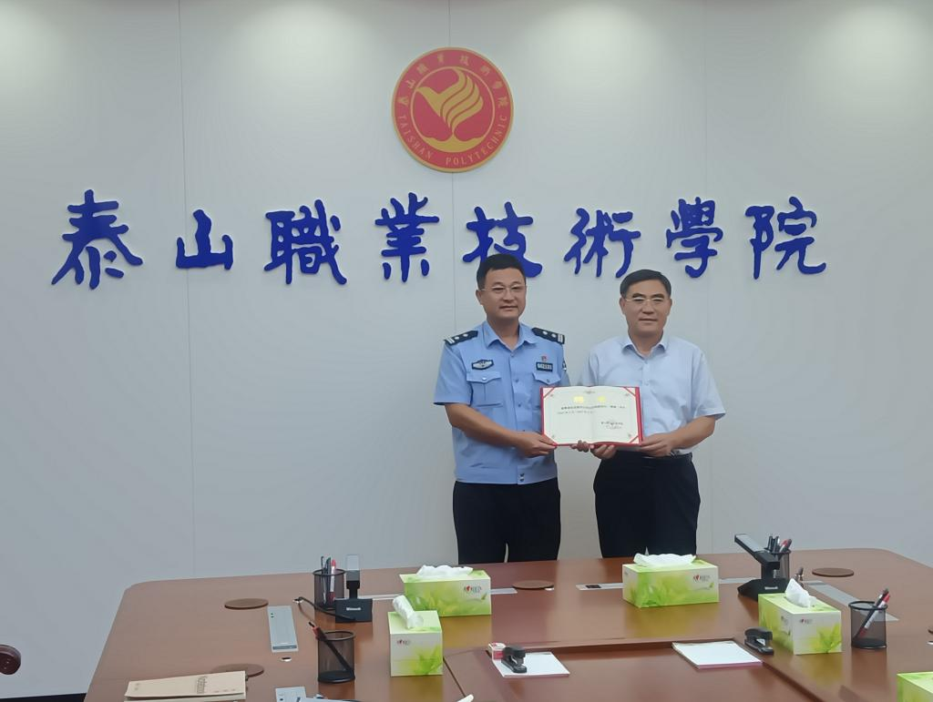 9月19日,学校举行聘请岱宗坊派出所一级警长张连彪为学校法治副校长仪式。党委委员、副校长陈士兵及相关部门负责人参加。安全保卫处处长宋来生主持仪式。