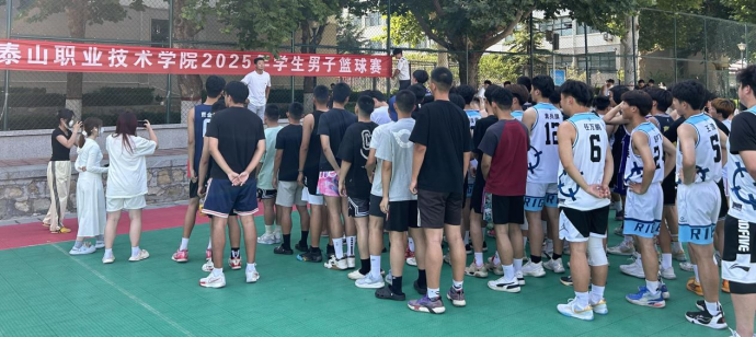 6 月 12 日下午,泰山职业技术学院 2025年学生男子篮球赛在热烈的氛围中拉开帷幕。本次赛事由基础部主办,以“丰富课余生活、增强团队凝聚力、展现青春风采”为核心宗旨,为学子们搭建了挥洒汗水的竞技舞台。
