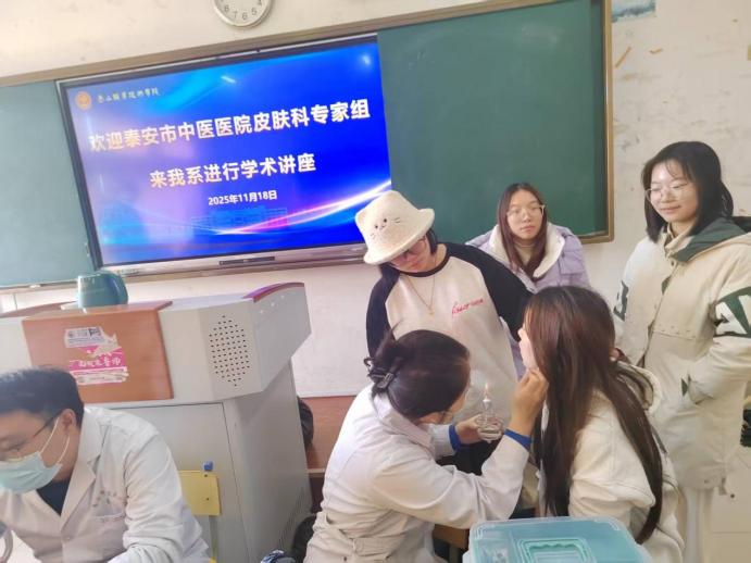 为普及皮肤健康知识,回应学生关切,11月18日下午基础部携手泰安市中医医院皮肤科,成功举办专家讲座进校园活动。