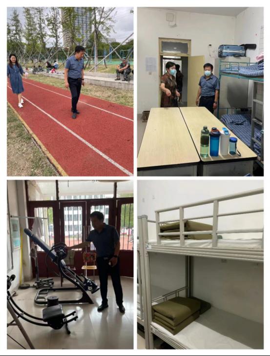 检查中操场上干净卫生;健身房内器材摆放整齐无误;宿舍内东西整齐摆放,床铺平整;教室内桌椅摆放井然有序,地面无灰尘。