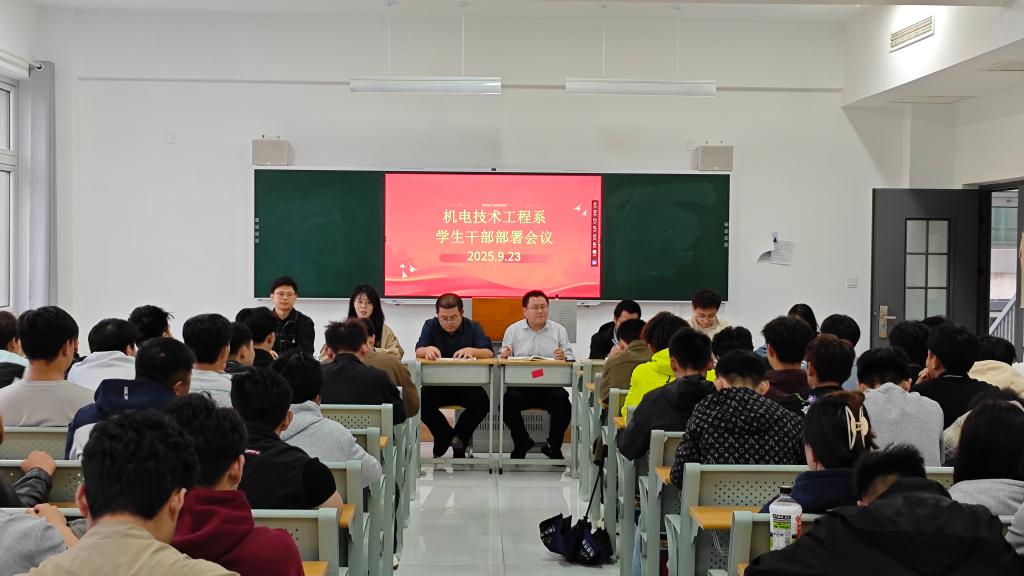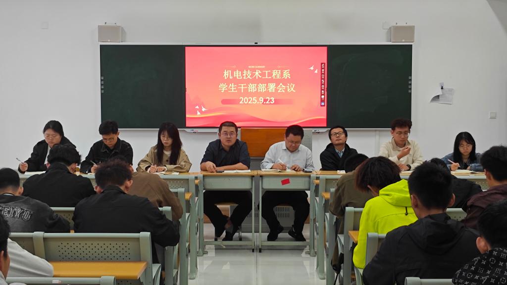 2025年9月23日下午,机电技术工程系在智能制造大楼A302教室召开本学期学生干部部署会议。会议参与人员由学生科科长侯加阳、副科长于翔,学生科老师以及全体学生会成员、2024级全体班长、2025级全体班级负责人组成。