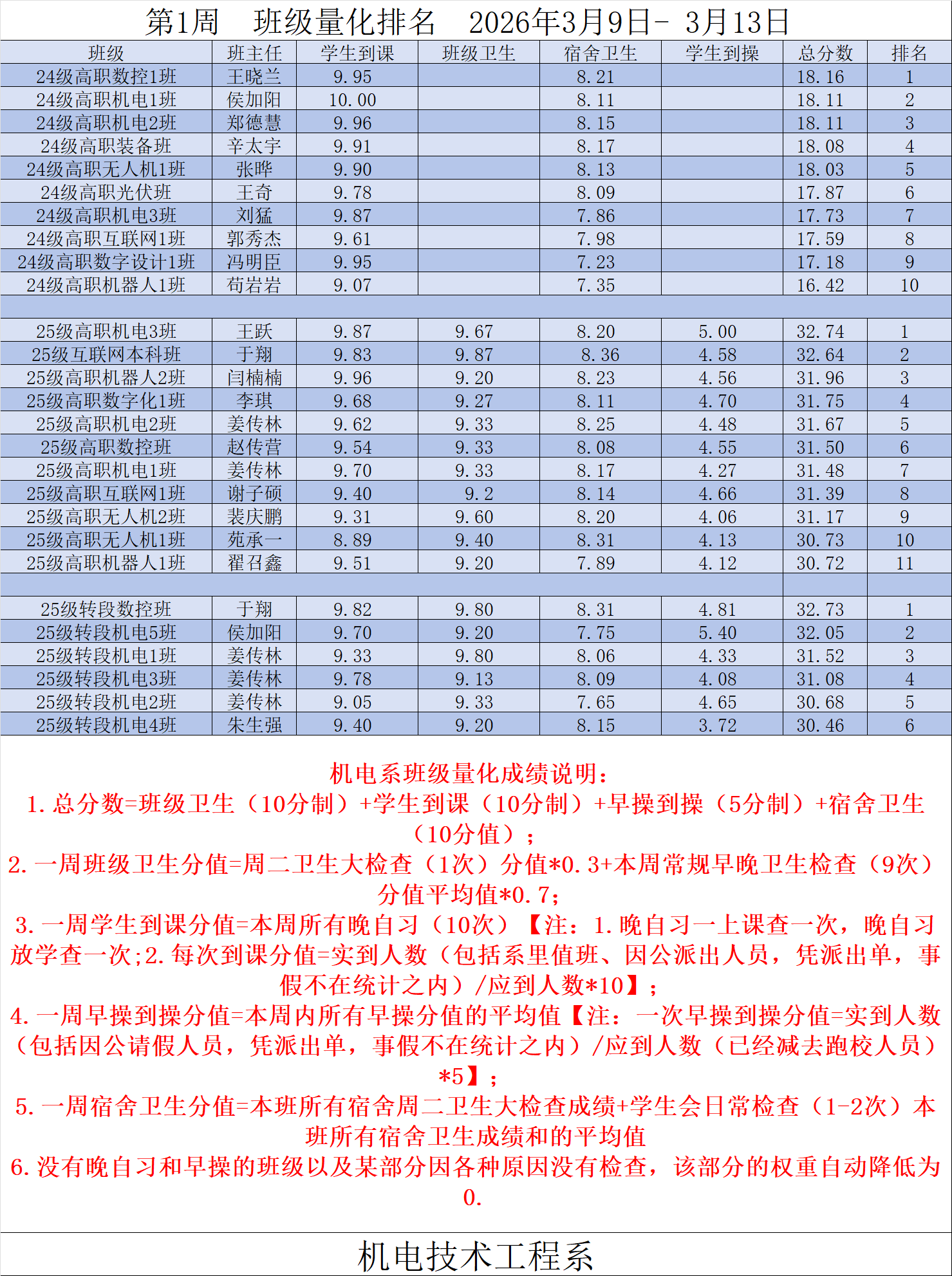 机电系第1周量化排名