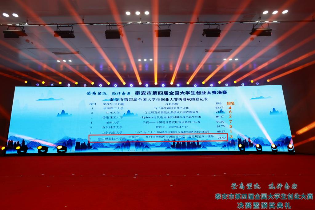 11月25日,“登高望远 选择泰安”泰安市第四届全国大学生创业大赛决赛隆重举办,我院项目《去俺村——乡村零散旅游资源挖掘串联、智能规划及一键导航的先行者》(参赛选手:贾志力、常靖敏、张士瞻、肖明阳、曹晋等)以总决赛排名第三的优异成绩,完胜华南理工大学、山东大学等知名高校,获得二等奖,侯加阳被评为优秀指导教师,我院荣获优秀组织奖。