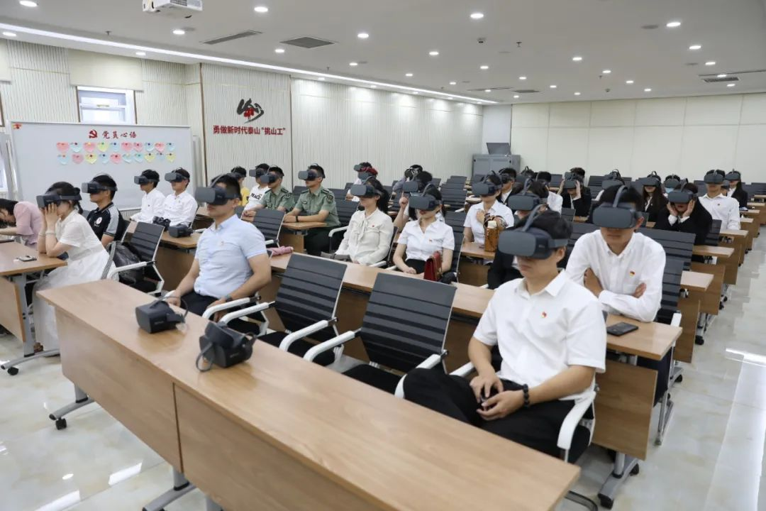 最后,我们来到了泰安主题党日活动中心的VR体验室,进行南湖革命纪念馆观影。随后,开展交流研讨活动,我院郭亚楠老师主持并提出殷切希望,车璐彤,王欢,李雨芯,陈兆铖等同学作交流发言。